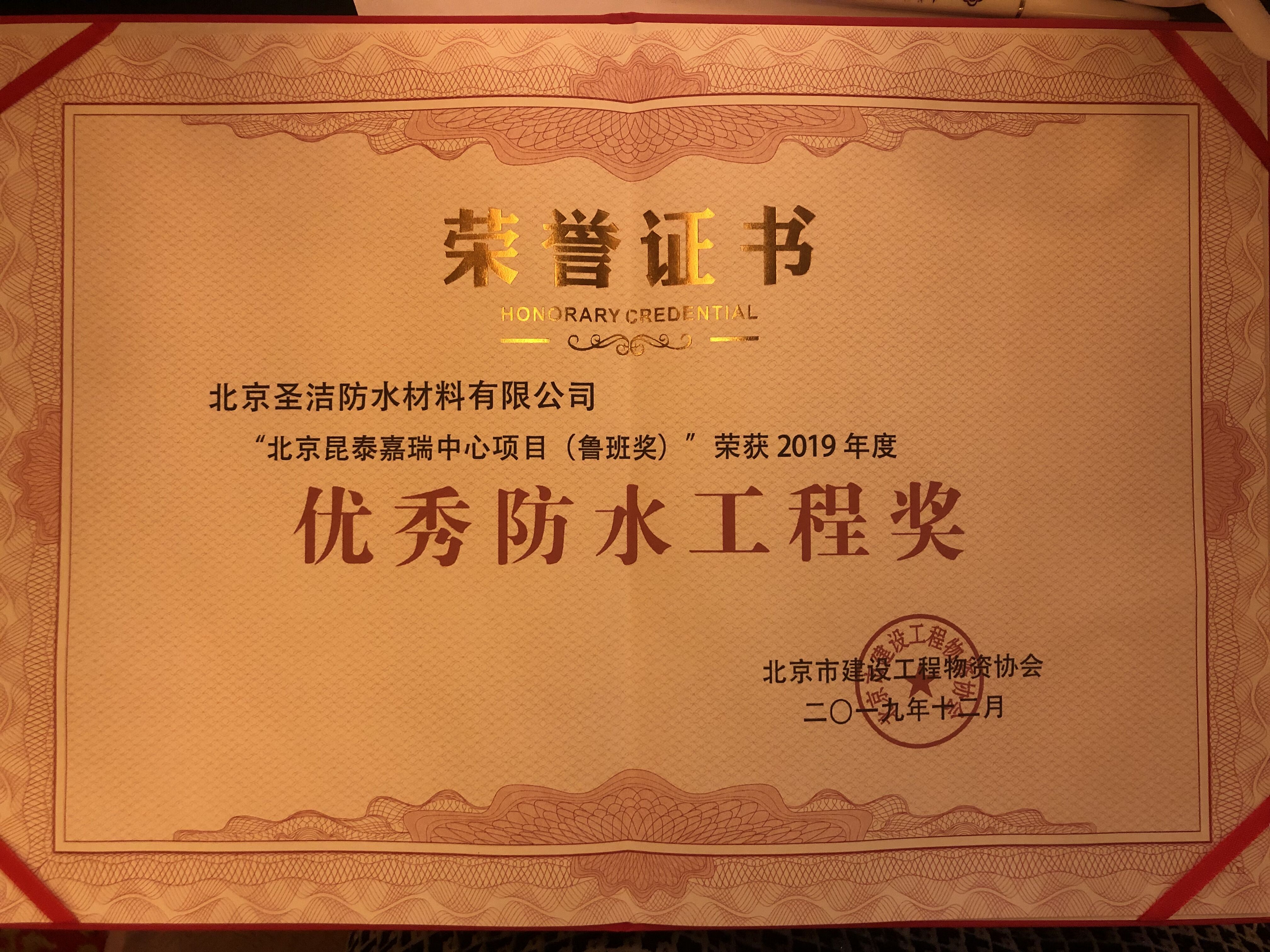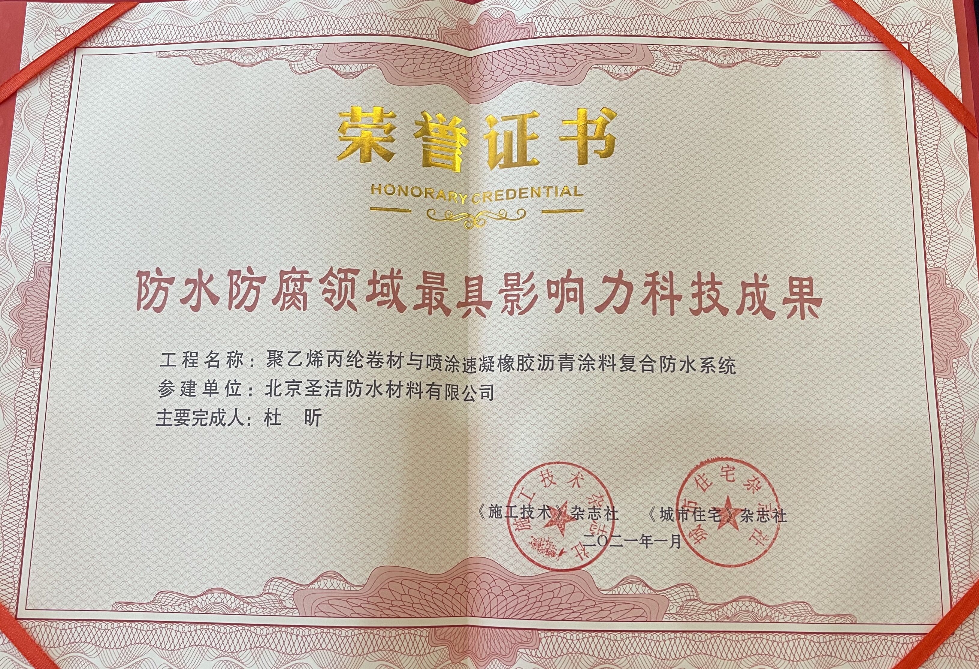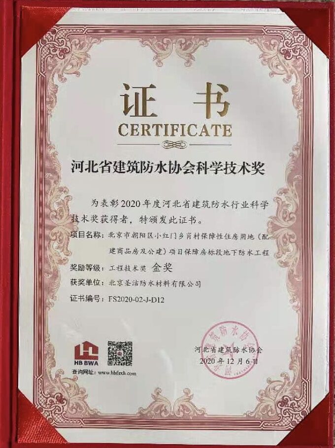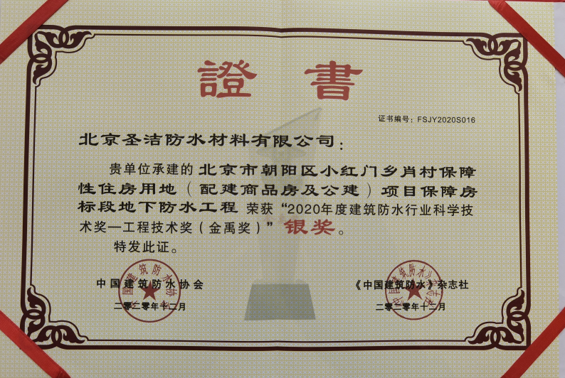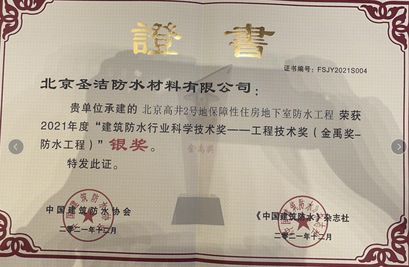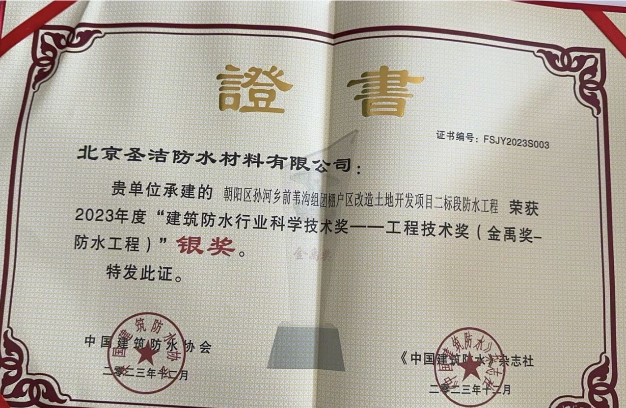 優(yōu)秀防水工程應(yīng)用獎(jiǎng)