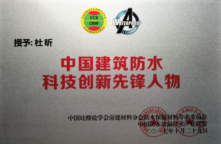 杜昕中國(guó)建筑防水科技創(chuàng)新先鋒人物證書