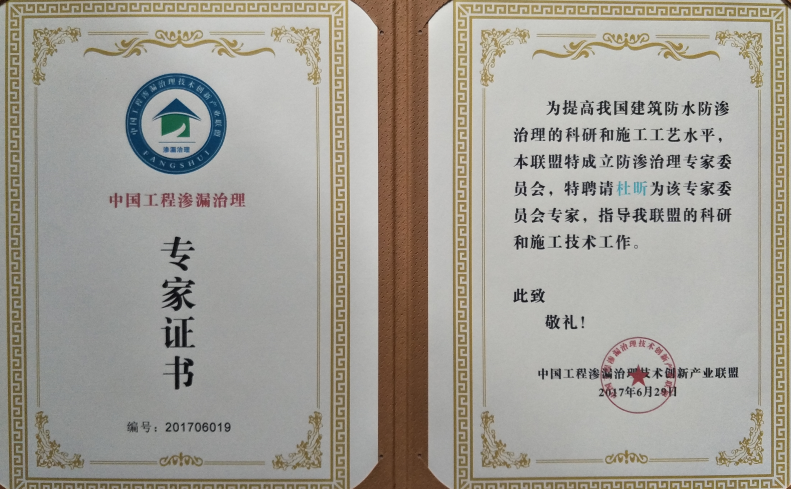 杜昕中國(guó)工程滲漏治理專家證書