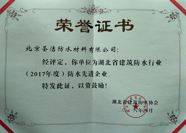湖北省建筑防水行業(yè)防水先進(jìn)企業(yè)