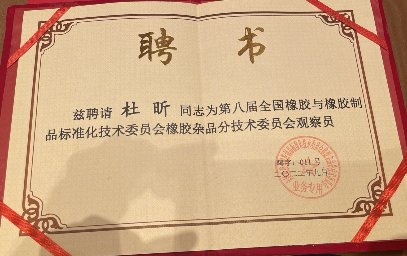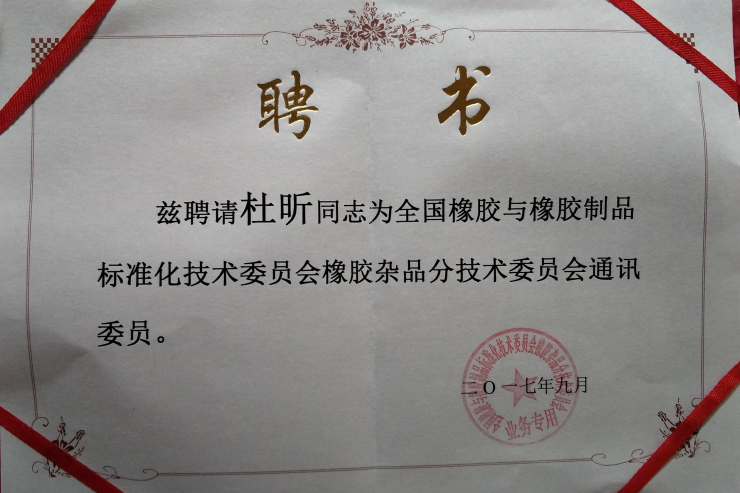 杜昕為第八屆全國(guó)橡膠與橡膠制品標(biāo)準(zhǔn)化技術(shù)
