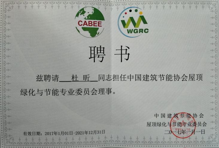 杜昕中國(guó)建筑節(jié)能協(xié)會(huì)屋頂綠化與節(jié)能專業(yè)委