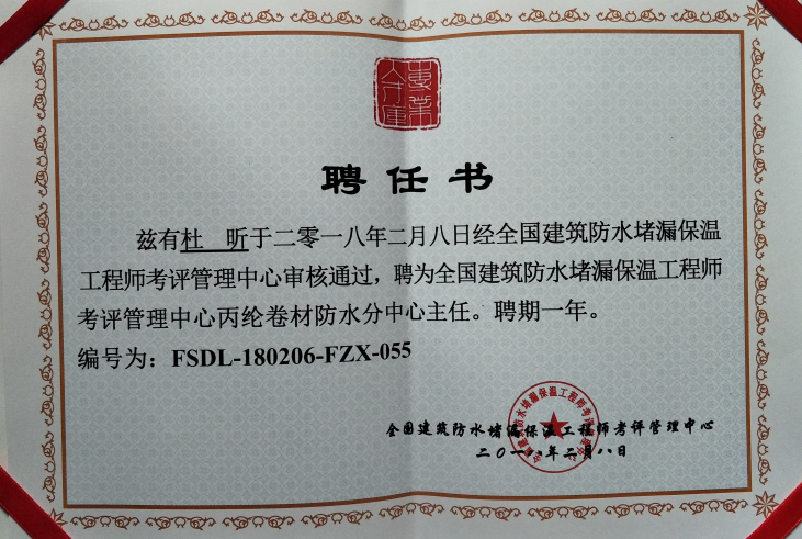 杜昕全國(guó)建筑防水堵漏保溫工程師考評(píng)管理中