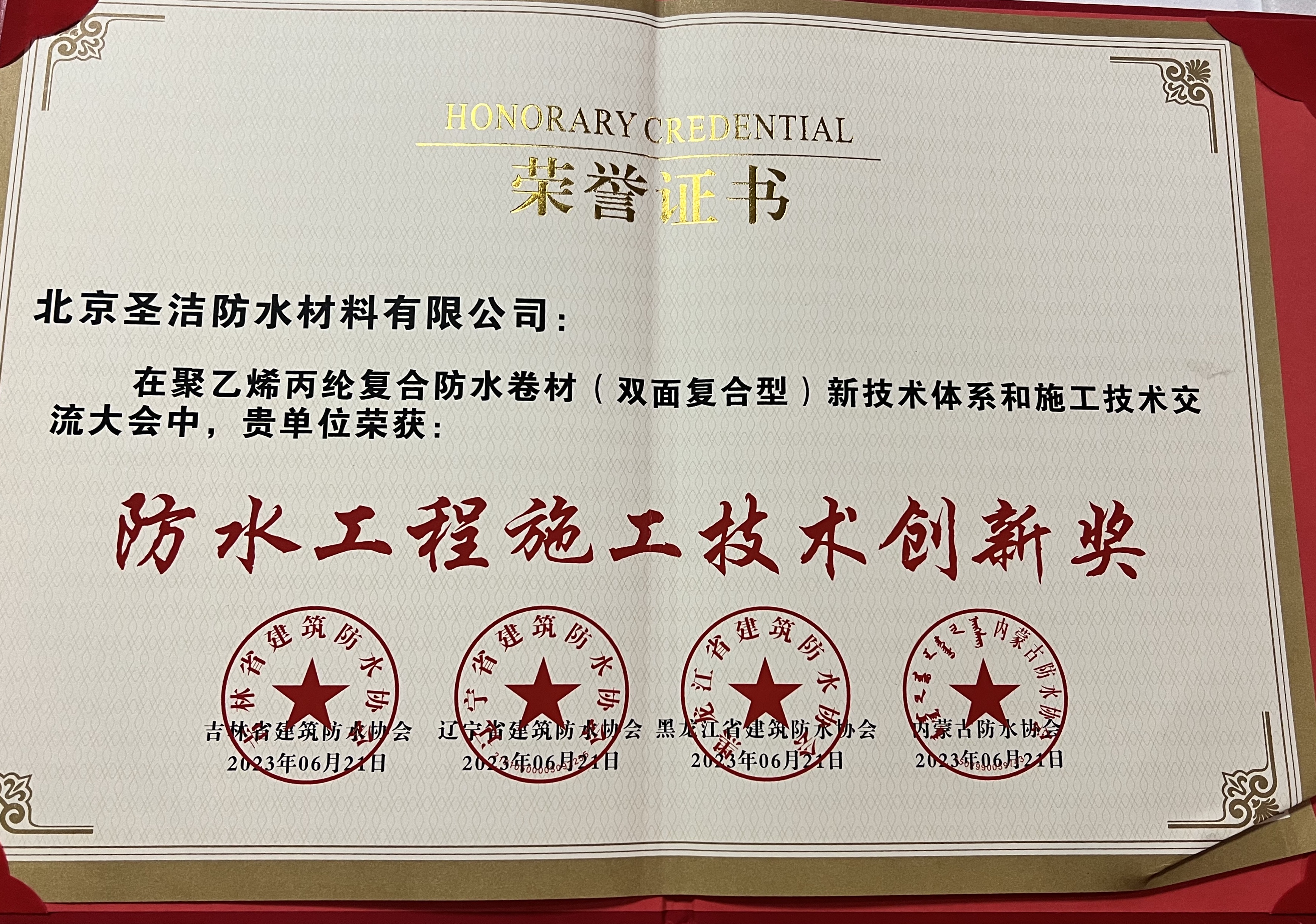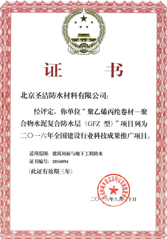 圣潔公司河北省建筑防水協(xié)會(huì)雙面復(fù)合高分子