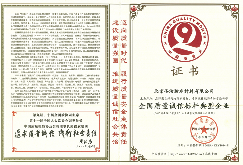 建筑防水行業(yè)質(zhì)量獎(jiǎng)