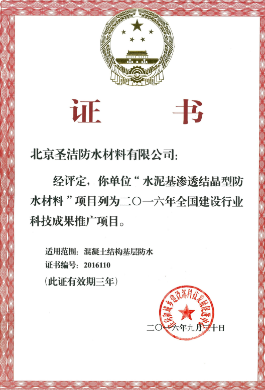 “水泥基滲透結(jié)晶型防水材料”全國(guó)建設(shè)行業(yè)