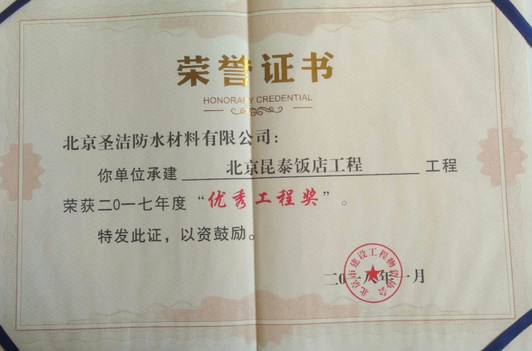 優(yōu)秀防水工程獎(jiǎng)