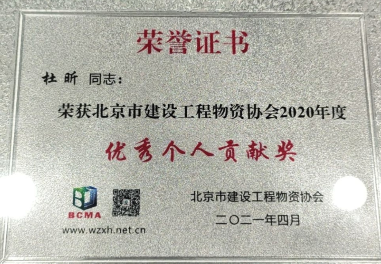 杜昕2020年度優(yōu)秀個(gè)人貢獻(xiàn)獎(jiǎng)