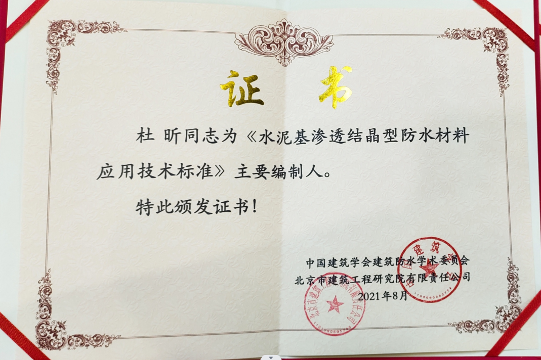 杜昕建筑工程復(fù)合防水技術(shù)規(guī)程主要編制人證