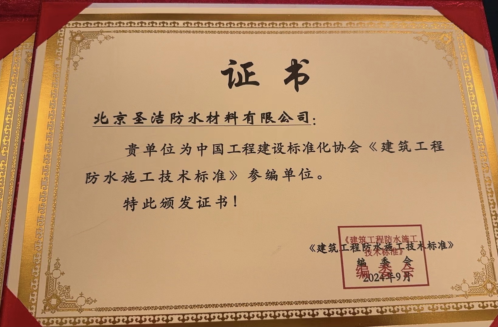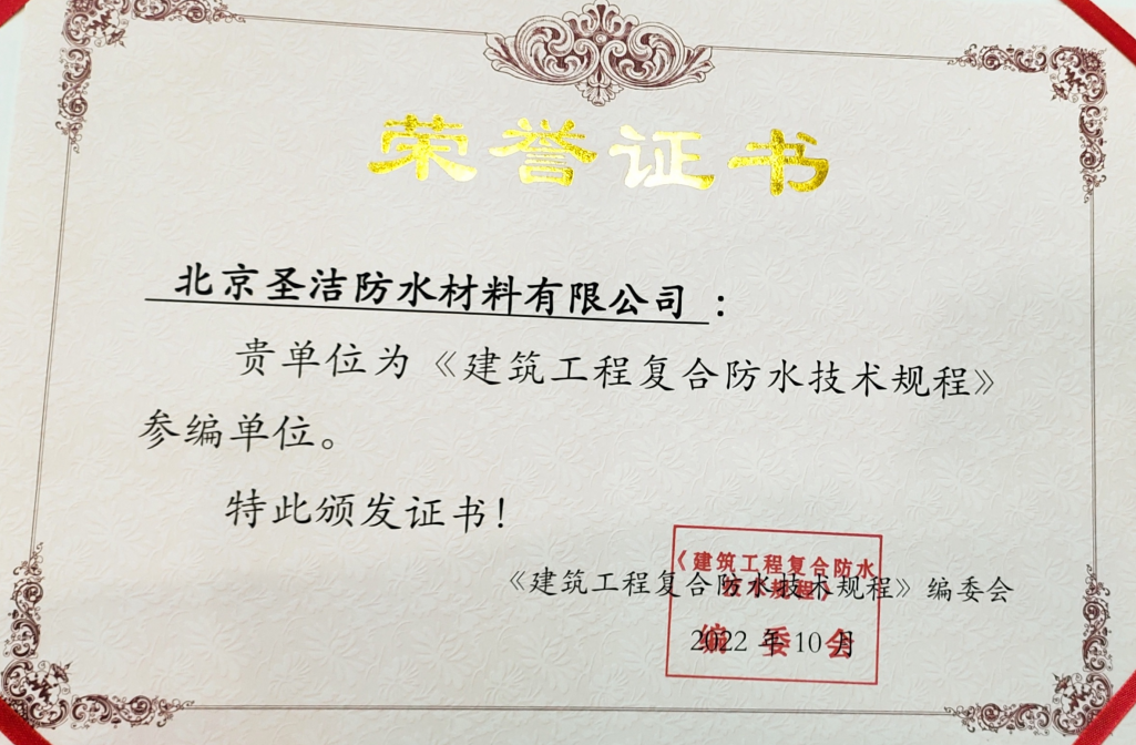 建筑工程復(fù)合防水技術(shù)規(guī)程參編單位證書