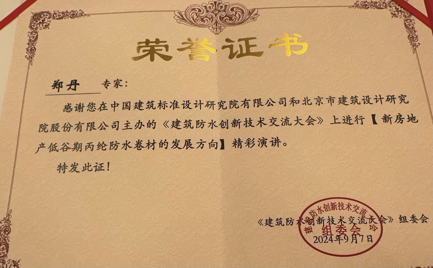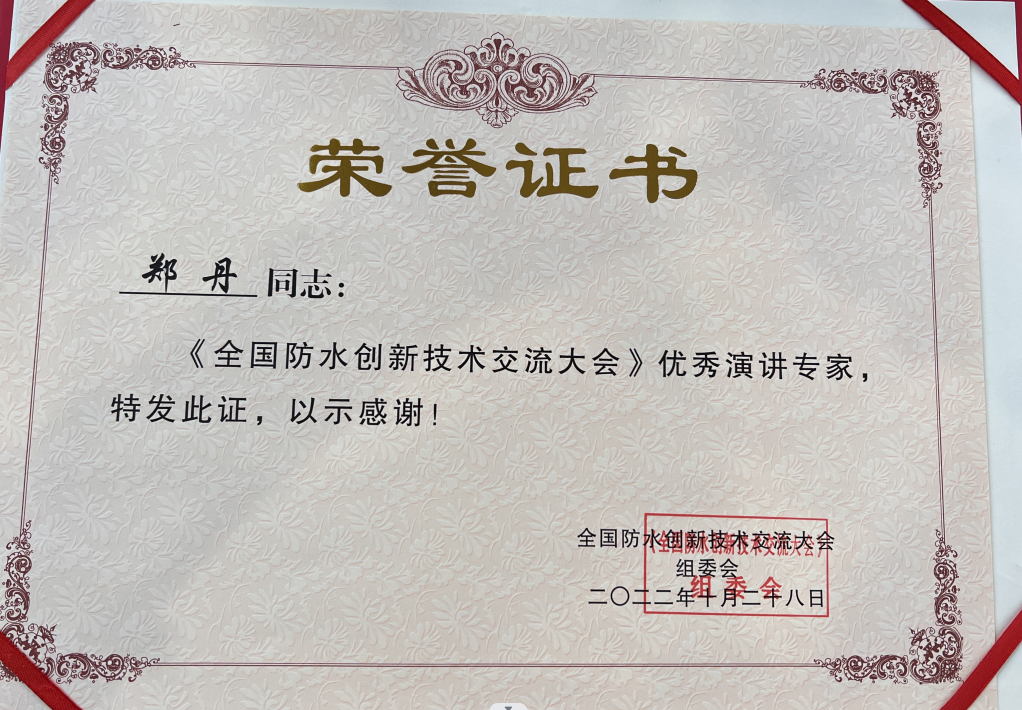 鄭丹全國(guó)防水創(chuàng)新技術(shù)交流大會(huì)優(yōu)秀演講專家