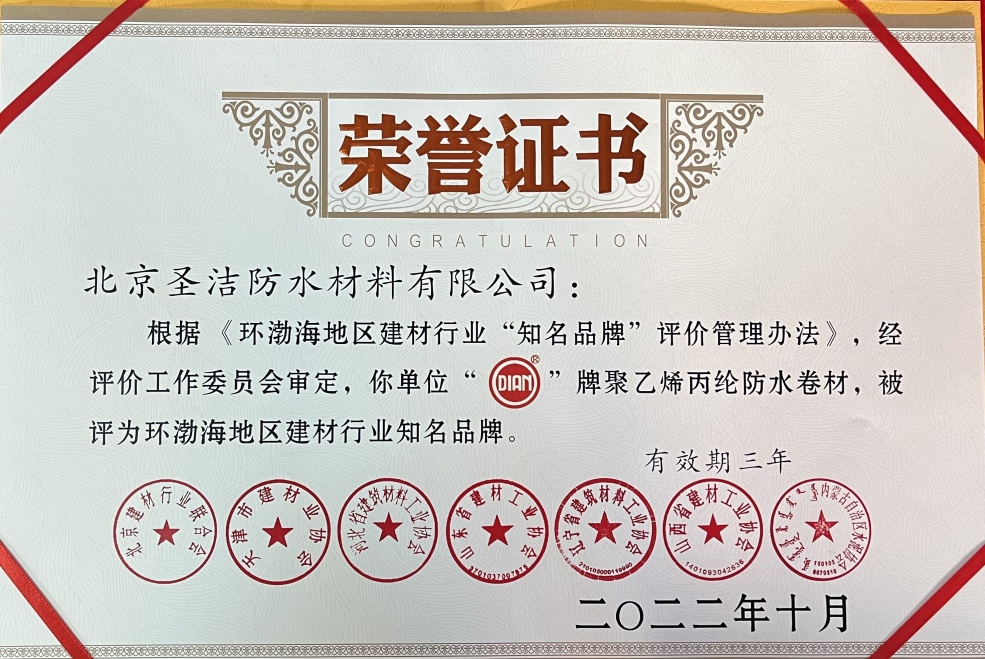 圣潔入選2022優(yōu)質(zhì)工程防水材料與技術(shù)白