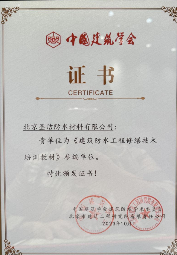 北京圣潔防水材料有限公司 為中國(guó)建筑學(xué)會(huì)