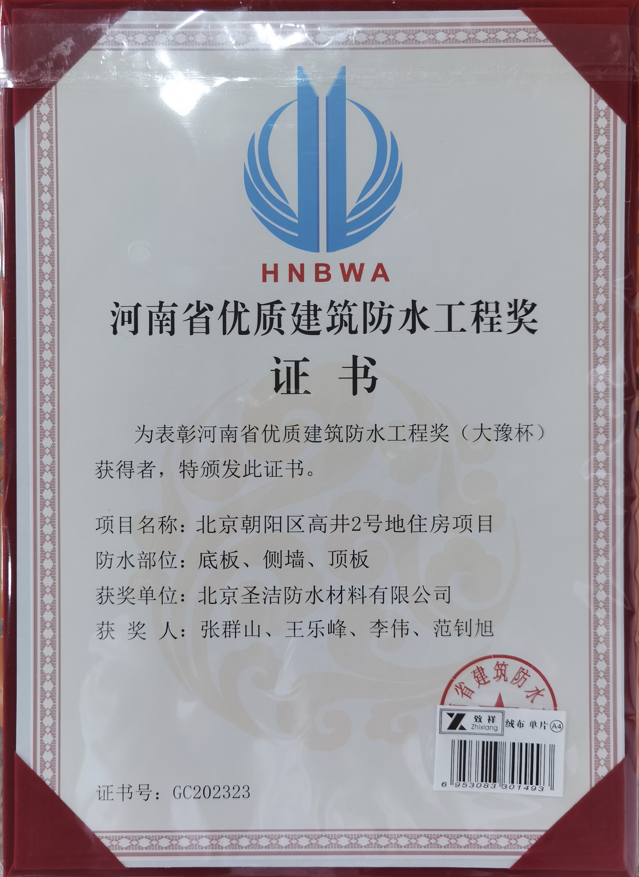 河南省優(yōu)質(zhì)建筑防水工程獎(jiǎng)