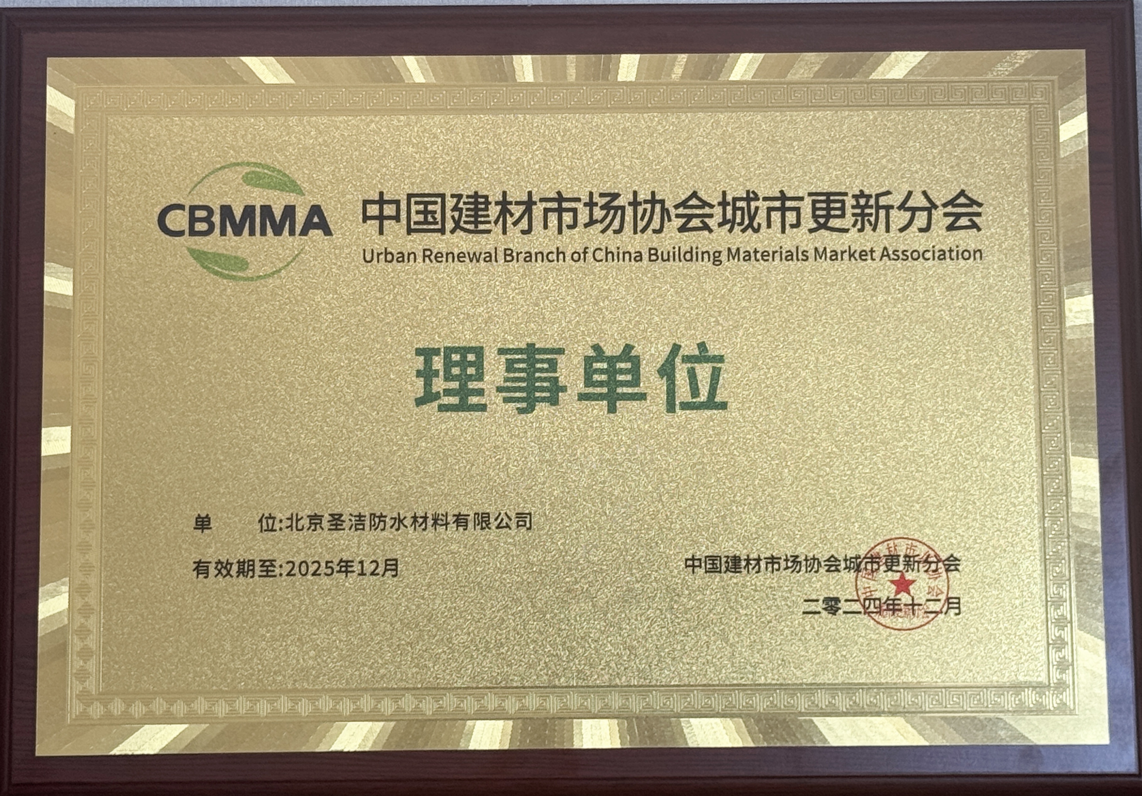圣潔防水中國(guó)建材市場(chǎng)協(xié)會(huì)城市更新分會(huì)理事