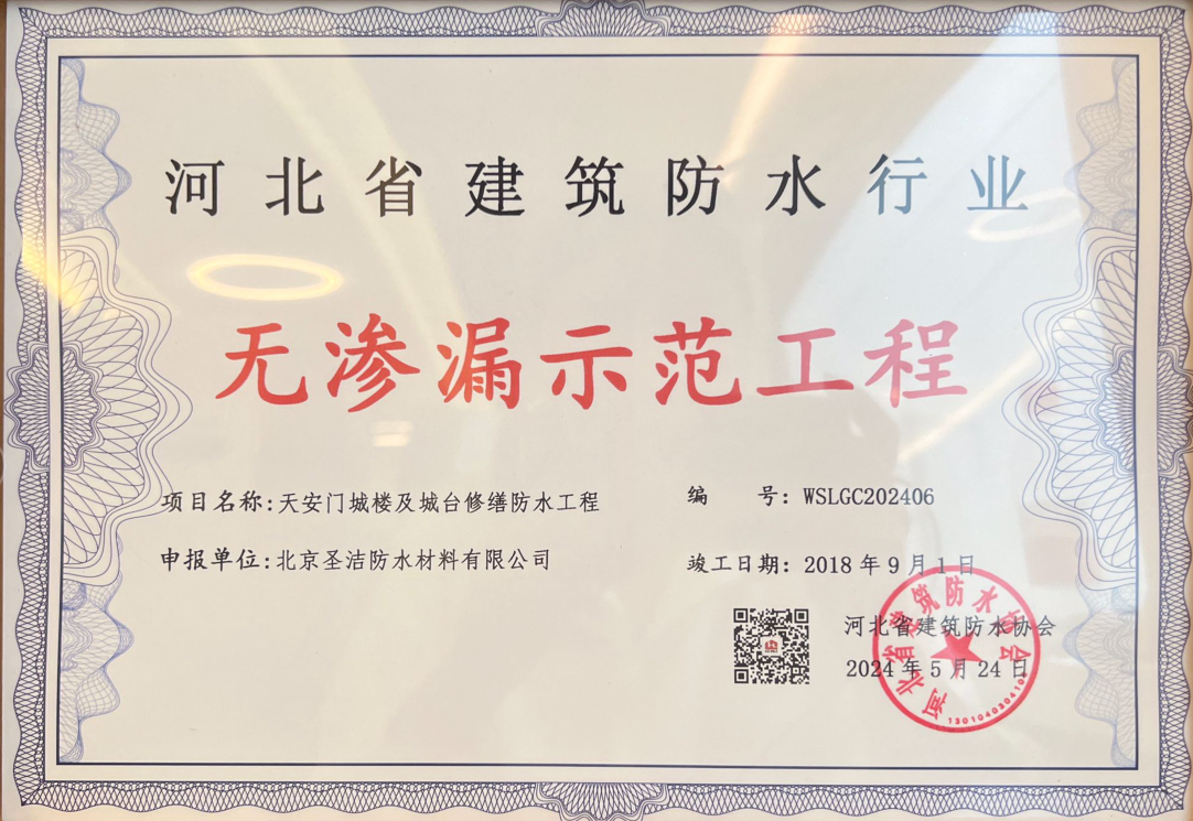 河北省建筑防水行業(yè)無滲漏示范工程