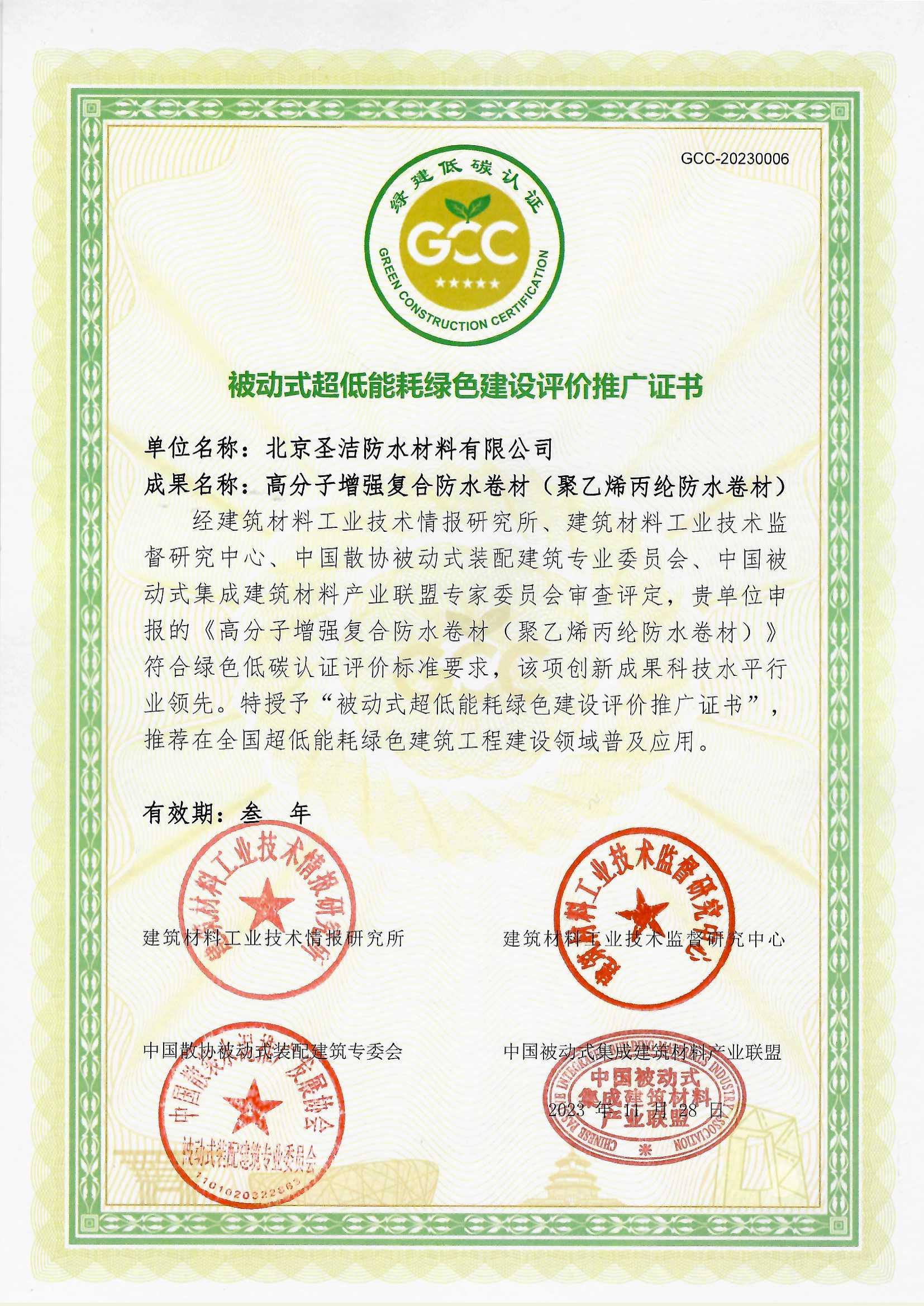 被動(dòng)式超低能耗綠色建設(shè)評(píng)價(jià)推廣證書